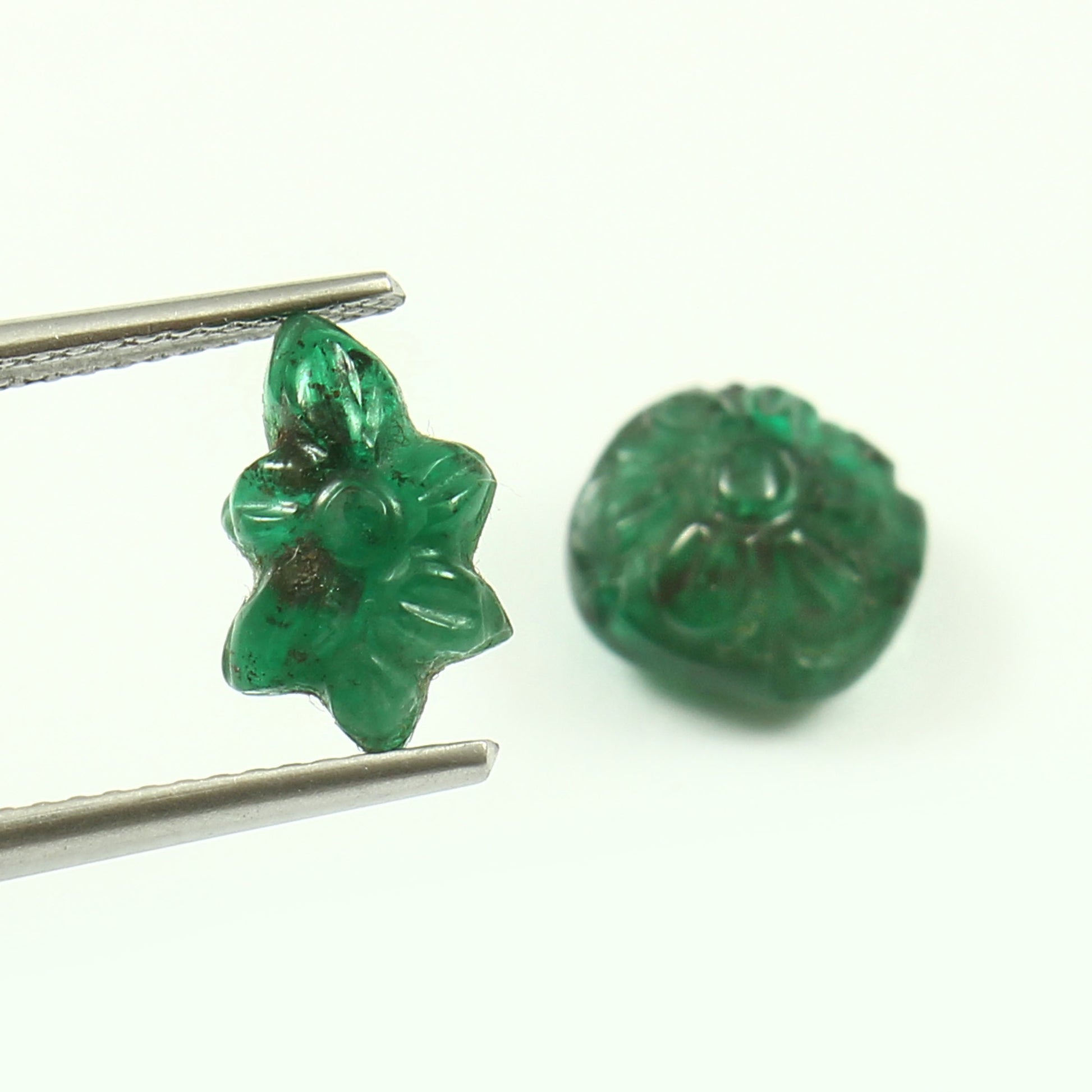 Natural Emerald Leaf and Cushion Carving Pair ct. 4.60